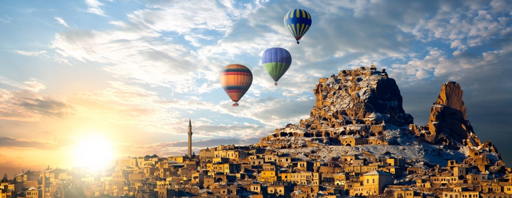 After the flight, enjoy a traditional Turkish breakfast with olives, cheeses, honey, simit, menemen (Turkish scrambled eggs), and fresh tea. Now you’re ready to discover Cappadocia’s wonders.