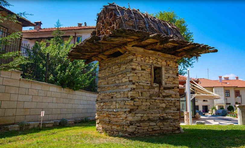 The museum garden offers a glimpse into the architectural and cultural heritage of the region. Visitors can see sarcophagi, architectural pieces, and even a bee mast, illustrating traditional methods of beekeeping that were historically practiced in the countryside.