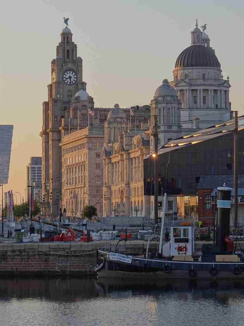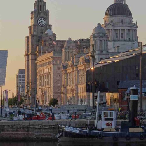 The “Three Graces” – the Royal Liver Building, Cunard Building, and Port of Liverpool Building – dominate the waterfront and symbolize the city’s maritime past.