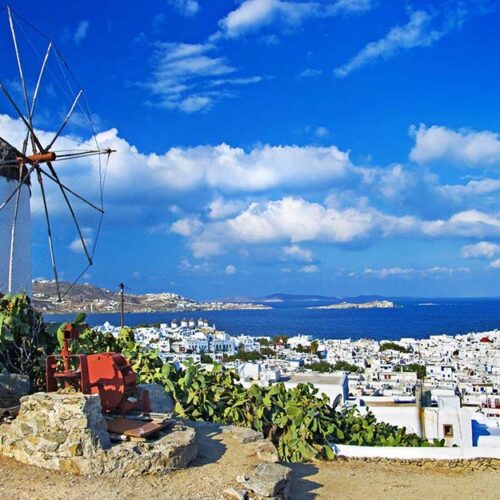 -Explore Mykonos Town (Chora) – wander through narrow alleys, see the famous Little Venice and the iconic windmills.