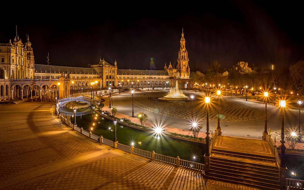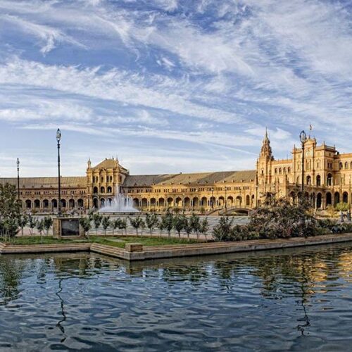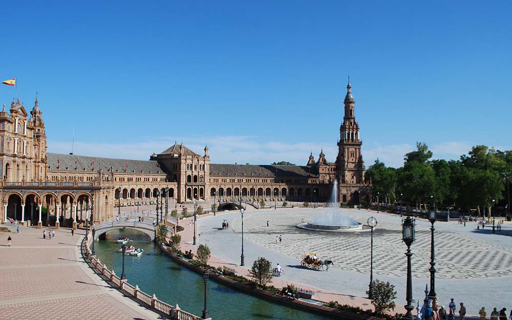 -Plaza de España: A breathtaking square built for the Ibero-American Exposition of 1929, featuring canals, bridges, and ceramic-tiled alcoves representing Spanish provinces.