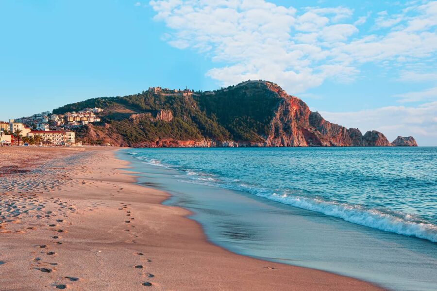 Nestled at the foothills of the Taurus Mountains, Cleopatra Beach is one of Alanya’s highlights. Legend has it that Queen Cleopatra herself once swam here during her Mediterranean voyages. Today, visitors are drawn by its fine white sands, sparkling waters, and vibrant city vibe.
