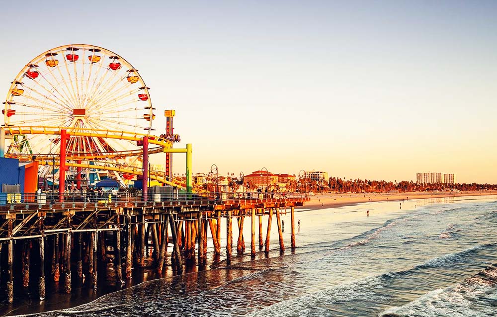 Just west of Los Angeles, Santa Monica Beach combines sun, surf, and city life. Its iconic pier features an amusement park, aquarium, and lively dining scene, making it a fun spot for families. The beach is also popular for cycling, rollerblading, and beach volleyball.